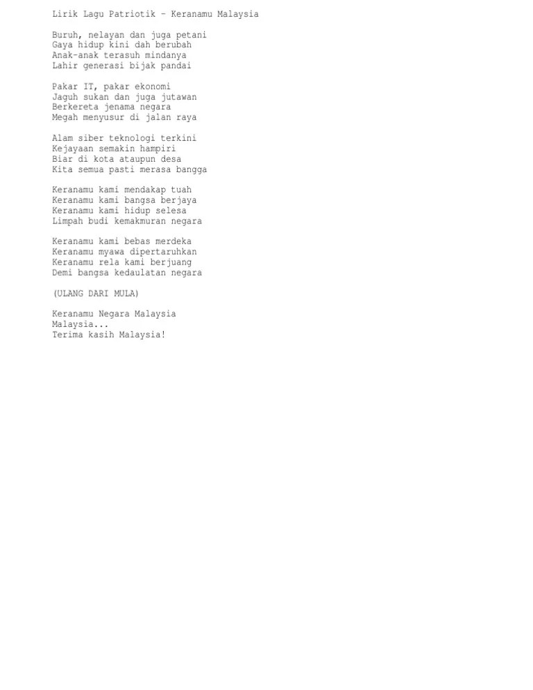 Lirik Lagu Keranamu Malaysia / Lirik Lagu Keranamu Malaysia. Lirik lagu keranamu malaysia buruh, nelayan dan juga petani gaya hidup . Gaya hidup kini dah berubah. Buruh, nelayan dan juga petani. Inilah satu2nya lagu dari zaman tun mahathir yg sentiasa melekat dalam minda semua warganegara malaysia (termasuk saya) sampai bila2!